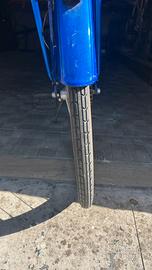Bicicletta blu, usata, ma in buone condizioni, tutto funzionante, gomme gonfie, freni funzionanti, sediolino confortevole.