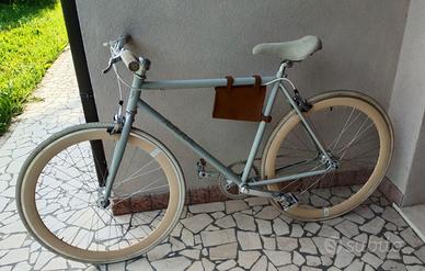 Bicicletta BlueBike NUDA 28" Fixed 1S-2021 colore Grey-Beige completa di borsello in pelle. Sella e maniglie in pelle scamosciata. Telaio in acciaio. Vendo per inutilizzo.