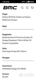 Vendesi splendida BMC ROADMACHINE 01 FOUR,acquistata a maggio2025,carbon premium,Shimano Ultegra 12di12v,ruote carbon crd321,perfetta,come nuova,usata pochissimo,vendesi causa malattia importante.