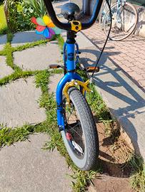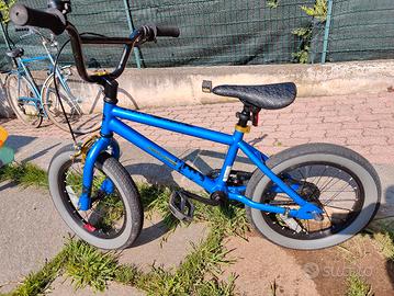 Vendo bicicletta BMX per bambino 3/4/5 anni color blu elettrico metallizzato da 16" appena tagliandata. Particolarità unica freno posteriore a contropedale e copri catena ! Bellissima