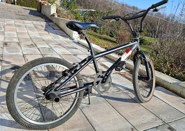 BMX freestyle con sterzo rotante 360°, perfettamente funzionante, si vende per inutilizzo. Sono inclusi anche i 2 pegs anteriori non visibili in foto.