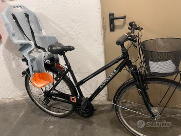 Vendo bicicletta da donna funziona tutto bene luce freni cambio ammortizzatori perfetta. Prezzo con seggiolone 110€. Sansa Seggiolone 95€. No perde tempo tl. 3454062879 GRAZIE