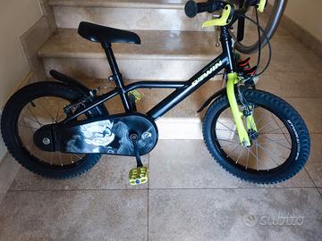 Vendo bicicletta Decathlon per bambino, Btwin misura 16 pollici. Adatta per bambini dai 4 ai 6 anni, che misurano da 105 cm a 120 cm. Grazie al paracatena, ai parafanghi ed al cavalletto consentono al tuo bambino di godersi i suoi primi viaggi senza sporcarsi o danneggiare la bici.