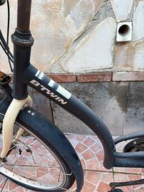 Bicicletta BTWIN munita di cestino e portapacchi posteriore