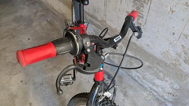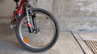 bicicletta per bambini, misura 20"con cambio posteriore, colore rosso. la bicicletta è in buone condizioni, presenta alcuni segni di usura dovuti all'uso e a qualche piccola caduta.