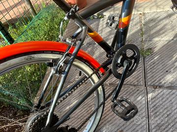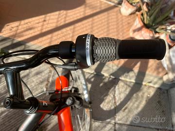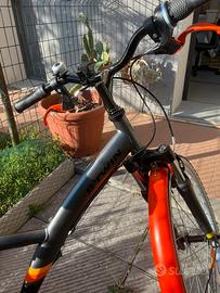 Vendo bici da bambino usata VTC Btwin ORIGINALE 500 s 24 POLLICI 500S NERO-ARANCIO del 2019Nuovo valore: 180€Abbiamo ideato questa bici fuoristrada per bambini dai 8 ai 12 anni (da 120 a 135 cm), che desiderano spostarsi dalla città ai sentieri sconnessi, con qualsiasi tempo. Per guidare tutto l'anno, questo VTC da 24 pollici è dotato di parafanghi, cavalletto e portapacchi. La maniglia rotante facilita il cambio delle 6 velocità