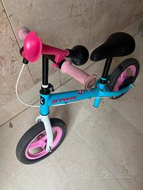 Bicicletta bici senza pedali rosa e azzurra per bambini bambina marca decathlon con trombetta e freni Modello BTWIN Runride 500 Scambio a mano Verona o Mantova