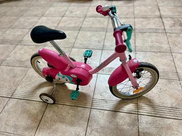 B'Twin modello Unicorn 500 con ruote da 14 pollici con rotelle, in perfetto stato. Adatta a bambini dai 3 ai 4,5 anni circa, con un'altezza compresa tra 95 e 110 cm. Visibile in zona Eur