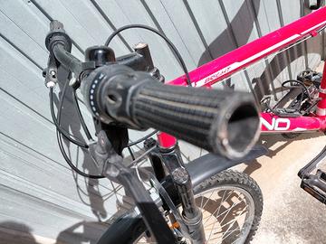 bicicletta Bugno, ruote 24 x 1.90 marce ammortizzatori anteriori manopole senza tappo qualche segno sul telaio pedali lievemente danneggiati accessoriata con : porta borraccia campanello parafanghi catarifrangenti sui raggi