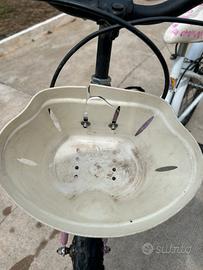 Vendo bicicletta della Cannellini da bambina. Presenta varie imperfezioni come graffi sia suo pedali che sul copri cerchi. Il sellino presenta un leggero graffio laterale e manca un piccolo pezzettino laterale in una delle due manopoline.