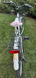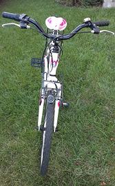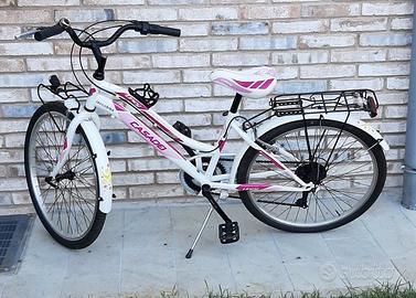 CASADEI - Bicicletta da ragazza bianco-rosa. Telaio e forcella rigida in acciaio. Trasmissione Shimano 1x6 v Cerchi in alluminio e copertoni da trekking 24"x1.75. Accessori: cavalletto, parafanghi, carter copri-catena, portapacchi posteriore, luci, campanello, porta-borraccia. Usata pochissimo, come nuova. Pagata € 275