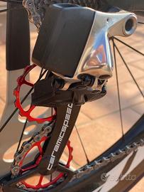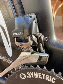 Bicicletta cronometro / triathlon Cervelo P5/six taglia 54. No graffi, no cadute. - SRAM Red ETAP wireless; - Corona ovale Osymetric 54R-130; - Pignone Shimano Dura-Ace 11 vel 11-27 denti; - Pulegge Ceramic Speed in garanzia; - Catena 11V Ceramic Speed UFO; - Ruote Zipp 808 tubolare originali; - Corpetto Zipp 11v; - Comandi cambio sdoppiati sia sul manubrio che sulle aerobars; - Freni idraulici Magura RT8-TT; - Sella ISM PS1.0; - Porta borraccia XLab Gorilla XT carbonio; - Porta gel XLab Pocket 300; - Pedivelle Rotor Flow 175mm; - Pedali Look Keo Blade Carbon. Ricambi smontati disponibili a parte: - Catena SRAM Red 11V nuova; - Porta gel XLab Pocket 200; - Forcella originale Cervelo P5-six non tagliata; - Pulegge originali SRAM; - Reggisella originale; - Aerobars curve originali; - Manubrio con leggera abrasione; - 1 gruppo pinza + pompa freno Magura RT6-TT nuovo; - Supporto manubrio High-V originale; - Carter aero freni anteriori nuovi; - Carter plastica movimento centrale nuovo; Ricevuta acquisto originale disponibile. Non scambio. Non vendo componenti separati.