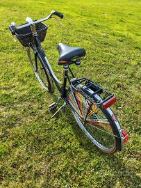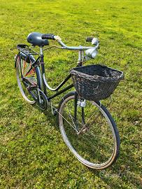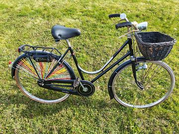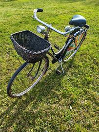 Vendo bicicletta da donna Ciclo Piave originale, marchio storico veneto. Modello classico con telaio a collo di cigno e freni a bacchetta esterni. La bici è ferma da tempo e viene venduta nello stato in cui si trova: un "conservato" ideale per amatori o per chi vuole cimentarsi in un restauro conservativo. Dettagli e Condizioni: Stato: La bicicletta presenta diffusa ossidazione e ruggine superficiale su cerchi, manubrio e parti cromate (come da foto). Accessori originali: Completa di paraveste a rete colorata, borsello sottosella marchiato Ciclo Piave e cestino in vimini. Meccanica: Luci con dinamo d'epoca e carter copricatena integrale. Necessita di una revisione completa a gomme, freni e una bella pulizia profonda. Ottima base per recuperare una bici elegante e robusta di altri tempi. Prezzo: 80 € solo ritiro a mano zona Belluno. per qualsiasi informazione non esitate a contattarmi.