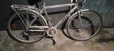 Vendo bicicletta city bike Atala in alluminio con ruote da 28. Bici con cambio Shimano 6v, scorrevole e con ottimi freni. Ha un ottimo telaio in alluminio e REGALO catena antifurto. Vendo euro 30,00. Il prezzo contenuto è dato dal fatto che non riesco ad abbassare il tubo della sella. La bici funziona bene, ma, al momento è adatta a persone di alta statura. Non spedisco