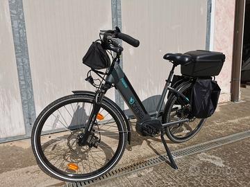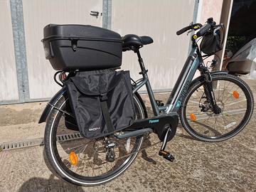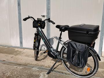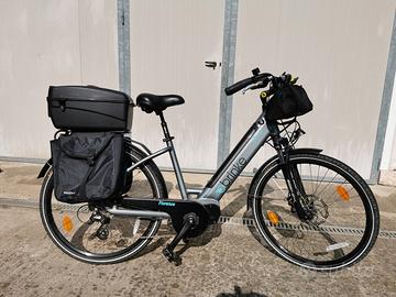 Bicicletta da donna city E - Bike Florence in alluminio, molto robusta, con borse laterali e bauletto. Tenuta molto bene