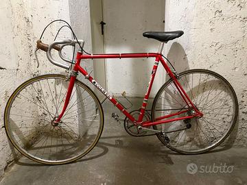 Bicicletta Colner Corsa anni ‘70 per Eroica, perfetta, conservata, pronta all'uso. La bici totalmente originale, conservata è ottima, per manifestazioni ciclostoriche vintage, monta leve freni Weinmann, pinze freni Universal, cambio anteriore Campagnolo e posteriore Campagnolo Patent Valentino, guarnitura Ofmega 52 - 42, manettini Campagnolo, pacco pignoni a 4 velocità.
