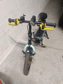 Bicicletta Decathlon completa di accessori e aggiunta di un cavalletto su misura, rotelle montabili e smontabili in 30 secondi a mano senza chiavi o attrezzi. Usata per 2 stagioni,in ottime condizioni.