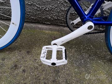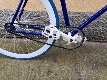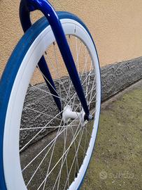 Vendo bicicletta in perfette condizioni. Personalizzata con catena blu, raggi bianchi, cerchioni maggiorati, pedali bianchi da BMX, mozzo e canotto bianchi. Prezzo trattabile