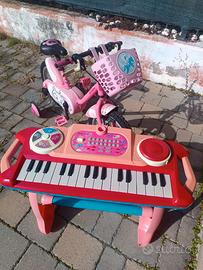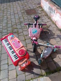 Bicicletta con rotelle + monopattino + tastiera
