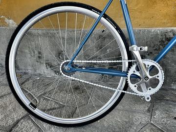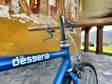 Bicicletta contropedale commissionata per la produzione e l’assemblaggio a Desgenà Biciclette Torino. Pezzo unico. Sellino Brooks, Telaio Columbus Cromor doppio spessore. Freno contropedale + ulteriore freno di sucurezza anteriore. Catena a contrasto bianca. Manubrio in legno costruito da artigiani dedicati. Appena revisionata completamente. Taglia S/M. Oggetto fantastico che non passa sicuramente inosservato. Condizioni pari al nuovo.