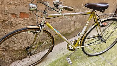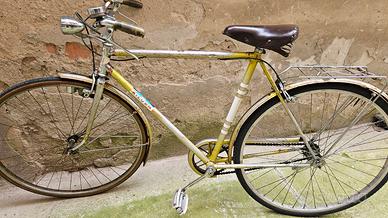 Bicicletta con cerchio contropedale da uomo vintage con ruote da 28" funzionante e marciante nello stato delle foto. Qualsiasi prova,prezzo fisso perche' lo vale solo il cerchio contropedale.