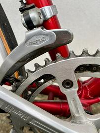 Bicicletta da corsa degli anni 90. Non presenta marchi sul telaio monta una compinentistica riconducibile al marchio “Bianchi” al momento priva di sella come da foto. Il telaio in acciaio misura all incirca 55/56. Consegna a mano