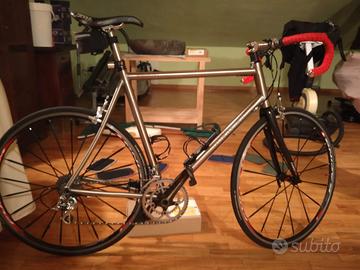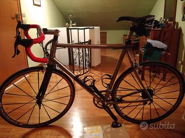 bicicletta titanio corsa grado 9 marca Rewel Titanium Bolzano cambio Campagnolo Chorus,ruote Fulcrum Racing 1,adattatore a persona altezza 175/190cm taglia L,fatta su misura guarnitura 50/34 forcella carbon Look tenuta maniacalmente,sella SMP copertoncini Continental