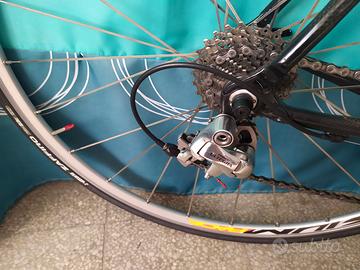 Bici da corsa Moser Karbon primi anni 2000. Gruppo completo Ultegra, ruote mavic Aksium copertoni vittoria, telaio carbonio in ottime condizioni con carro posteriore dedacciai! Sellino nuovo. Bicicletta leggera con canna centrale mis. 54 cm centro/centro (tubo canotto sella-tubo stelo forcella), per altezze fino a 1.75 va bene. Pedali Look con sganci rapidi. Bicicletta da amatore e per intenditori. Vendo per inutilizzo, vista e piaciuta! Disponibile visione solo se realmente interessati. No spedizione consegna a mano dopo visione. In caso di acquisto potrei dare in omaggio anche una scarpa diadora nuova giallo e nera con tacchette look N43.