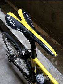 vendo bicicletta da corsa uomo, la bicicletta è stata fatta su misura per le mie misure 173cm. logicamente si può adattare a misure di qualche cm + o - della mia. il telaio è in alluminio, il carro, la forcella, pipa e manubrio, reggisella e sella in carbonio, la guarnitura è della dura ace 10v. pacco pignoni nuovi, catena nuova, cerchi della mavic e copertoni nuovi, insieme alla bicicletta do altra coppia di cerchi sempre della mavic completi. il prezzo non è trattabile perché solo i cerchi e la sella valgono la cifra...