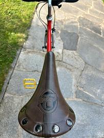 Vendo bicicletta da corsa vintage con telaio in acciaio columbus, leggerissima e modernizzata con cerchi più resistenti ma sempre con profilo sportivo, cambio shimano dehore posteriore, pedali burgtec, manubrio bull bar, sella moderna e freni moderni. Gomme e camere d’aria nuove appena installate. Bici scattante con sapore vintage.