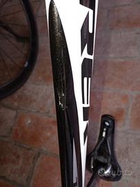 Telaio in alluminio forcella in carbonio,tenuta in ottimo stato,ha solo una piccola ammaccatura dovuta da urto.