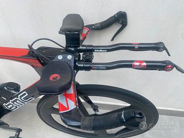 Buongiorno Per cessata attività vendo questa meravigliosa bicicletta da cronometro triathlon in perfette condizioni , materiale top di gamma Guarnitura FSA carbon 54-42 175 Cambio SRSM. RED 11 v con cassetta 11-23 Manubrio VISION carbon Lenticolare posteriore ZIPP ceramic Cerchio anteriore carbon a tre razze Sella SITERO con attacco borraccia dalle foto non rende , dal vero è uno spettacolo Telaio XL adatto a persone dal 1,80 in su , le geometrie sono per me che misuro 1,83 Vendo esattamente come in foto Fate lavostra offerta che troveremo senz’altro un accordo