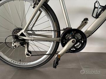 In alluminio, cambio Shimano Alivio 3x8v, gomme tubeless, usata poco.