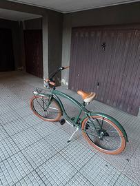 Vendo splendida bicicletta cruiser vintage “California Dream”, un pezzo dal forte carattere retrò ispirato alle classiche bici americane da spiaggia. Questa bici non è una semplice city bike: è un vero oggetto di stile. Le linee morbide del telaio, il manubrio alto e la sella ampia con scritta “California Dream” richiamano il fascino delle cruiser anni ’50/’60, oggi sempre più ricercate. Il colore verde opaco, abbinato ai dettagli marroni (sella e manopole), crea un look elegante e senza tempo. Perfetta sia da usare che da esporre. ✨ Punto forte: La sella “California Dream” la rende unica e riconoscibile, ideale per chi vuole distinguersi. 🔧 Caratteristiche: •Telaio cruiser vintage con linea curva •Sella larga e super comoda •Manubrio alto stile retrò •Copertoni larghi per stabilità •Portapacchi anteriore •Cavalletto incluso 🚲 Ideale per: •Amanti del vintage •Passeggiate in città •Chi cerca una bici particolare 📍 Ritiro a mano a Casalpusterlengo Contattami per info o per vederla!