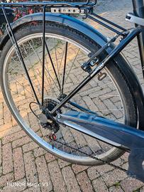 Bicicletta da uomo con cambio, ruote da 28" colore nero, con porta pacchi e cavalletto.