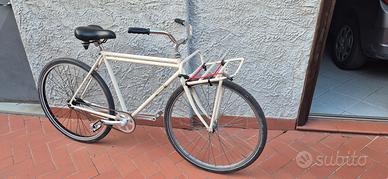 bicicletta custom ,telaio doniselli da panettiere doppia canna taglia L,ruota posteriore con freno contropedale,manubrio cruiser . Movimento centrale,pedali e ruote nuovi,copertoni usati,prezzo trattabile