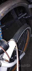 Vendo bici custom monomarcia (senza deragliatore o cambio) in discrete condizioni, a marchio Unieuro. Ha dei graffi a causa dell'usura e del tempo, ma: - ho sostituito catena e pattini dei freni da poche settimane ; - ho aggiunto un faretto anteriore in stile vintage, che funziona a pile, e una luce di posizione posteriore ; - ha gli pneumatici in buono stato, come si vede da foto. Ottima per spostarsi in città per la posizione di guida e perché ha il sedile ben ammortizzato. Disponibile per la prova e l'acquisto in zona Cenisia e San Paolo.