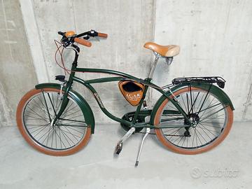 Vendo bicicletta come da foto stile custom ....colore verde inteso militare....usata davvero 2 volte (dalle foto si vedrà anche le ruote ancora nuove ossia non sporche) ....causa scarso utilizzo da parte mia ...... acquistata 5 anni fa a 600 euro .........vendo a 200 non trattabile....(Non spedisco)