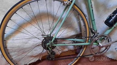 Bicicletta Bianchi anni ‘70 – Perfettamente conservata, tutta originale. La bici è completamente originale in ogni sua parte, ideale per appassionati di ciclismo vintage. Dettagli: Telaio taglia 54; Cambio Campagnolo Valentino Extra; Guarnitura già rapportata da salita; Manubrio 3ttt (3T) originale; Freni con pattini nuovi; Cerchi Nisi - copertoni Vittoria utilizzati una sola volta (per L’Eroica). Sella in camoscio in perfette condizioni; Porta-borraccia con le fascette dell'epoca e borraccia Bianchi. Extra inclusi: Coppia di tubolari aggiuntivi. La bicicletta è pronta all’uso, perfetta per eventi storici come L’Eroica . Prezzo trattabile.