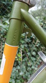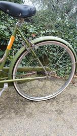 Vendo bicicletta d’epoca Bottecchia originale, anno 1973, modello da donna con telaio a scavalco basso, elegante e intramontabile. Bici vintage autentica, ideale per appassionati di biciclette d’epoca, collezionisti o per chi desidera una city bike classica dal grande fascino. 🔧 Caratteristiche: •Marca: Bottecchia •Anno: 1973 •Misura ruote: 28 •Telaio: acciaio, scavalco basso •Colore originale: verde con dettagli gialli •Parafanghi originali •Carter catena in metallo •Portapacchi anteriore con cestino in vimini •Cavalletto centrale •Fanale anteriore vintage •Sella classica •Numero di telaio presente e visibile La bicicletta è completa e conserva i suoi componenti originali. Presenta normali segni del tempo, coerenti con l’età, che ne valorizzano il carattere e l’autenticità. 🎯 Ideale per: •passeggiate cittadine in stile retrò •collezione di bici d’epoca •arredo vintage (vetrine, locali, eventi) •restauro conservativo 📍 Visionabile e ritirabile a mano 💰 Prezzo: 130€ Contattami per ulteriori informazioni o foto.