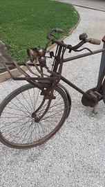 Freni a bacchetta, manopole in legno, campanello e fanalino posteriore rifrangente rosso originali, borsetta di cuoio sotto la sella porta attrezzi...