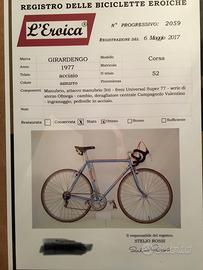 Bellissima bicicletta adatta a eroica e manifestazioni vintage, conservata originale mai restaurata, marca girardengo, cerchi nisi con camera d’aria e copertoncini kenda per strade bianche, cambio campagnolo valentino extra, guarnitura campagnolo 42/51 cassetta pignoni a 5 velocita, manubrio e piega manubrio 3t, freni universal, per chi interessato ho anche un video illustrativo non effettuo spedizione.
