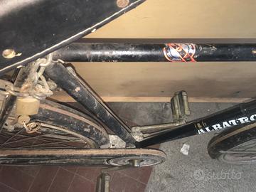 Bicicletta d’epoca ALBATTOS ( da ricerche fatte dovrebbe essere della Piaggio) con freni a bacchetta manopole in bachelite borsetta ferri originale tutta funzionante bisogna fare una lucidata verniciata e collaudo. Il suo valore restaurata vs oltrr le 300 euro