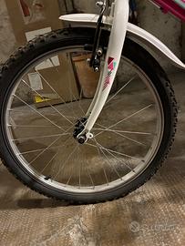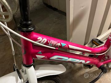 Bicicletta da bambina Carnielli CTB Pretty GIRL 20 di col bianco con grafiche rosa e verde acqua adatta alle bimbe da 6 a 8 anni. Dotata di sistema frenante V-brake in acciaio e cambio Shimano RS36 6V. Ritiro zona P.zza Grandi