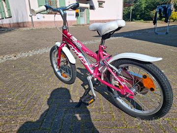 Come da oggetto vendo bicicletta seminuova da bambina prodotta dalla Atala. La bici è la versione Taddy in colorazione rosa metallizzato e bianco, dotata di freno anteriore e posteriore funzionanti. Essa monta cerchi silver da 16 pollici. Le gomme sono seminuove come da foto. accessori che dispone: - cavalletto - gemme La bici è adatta per età dai 4 - 7 anni di altezza da 105 a 135 cm. Viene venduta per inutilizzo