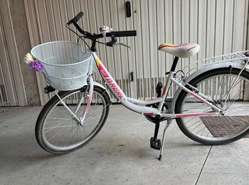 Bicicletta da bambina bianca in metallo con cestino usata 4/5 volte .