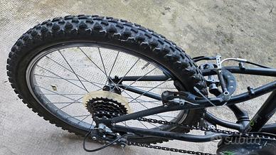 La bici è stata utilizzata pochissimo e le gomme tassellate sono perfette come si vede in foto. Mio figlio ha fatto uno scatto di crescita durante l'inverno (buon per lui, ma un copertone l'avevamo comprato nuovo al Decathlon l'anno scorso...).