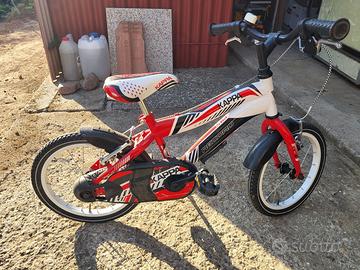 vendo bicicletta per bambino, incluse rotelle (anche se non compaiono nelle foto). Usata poco, in buone condizioni.