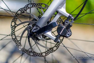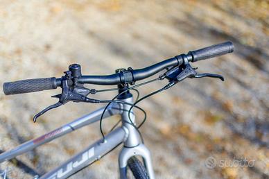 Bicicletta FUJI Absolute 1.7 da donna usata del 2022, taglia M (da 1,55 a 1,65) da città e cicloturismo, adatta anche a qualche facile sterrato. Telaio in alluminio A2 butted, ruote 28”, copertoni Good Year Transit Tour 40-622, freni a disco idraulici Tektro, cambio Shimano Alivio 2x9 velocità, deragliatore Shimano Acera, guarnitura 30-46T, pignoni 11-36T, portapacchi posteriore, cavalletto, campanello, portaborraccia, attacchi per parafanghi. Peso con pedali 13 kg. Ottime condizioni.