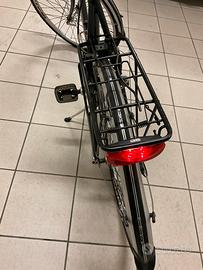 Come da foto vendo bellissima bicicletta da città con cambi al manubrio , portapacchi, fari a led anteriori e posteriori, cavalletto e serratura. Poco usata, praticamente come nuova.